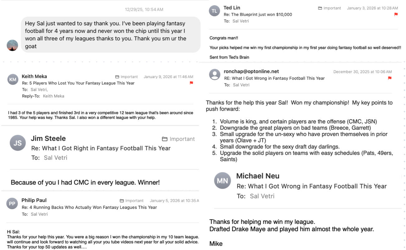 P.S. If you want my full weekly rankings, waiver targets, start/sit advice, and the exact tools I use in all my league - unlock my Fantasy Blueprint here.